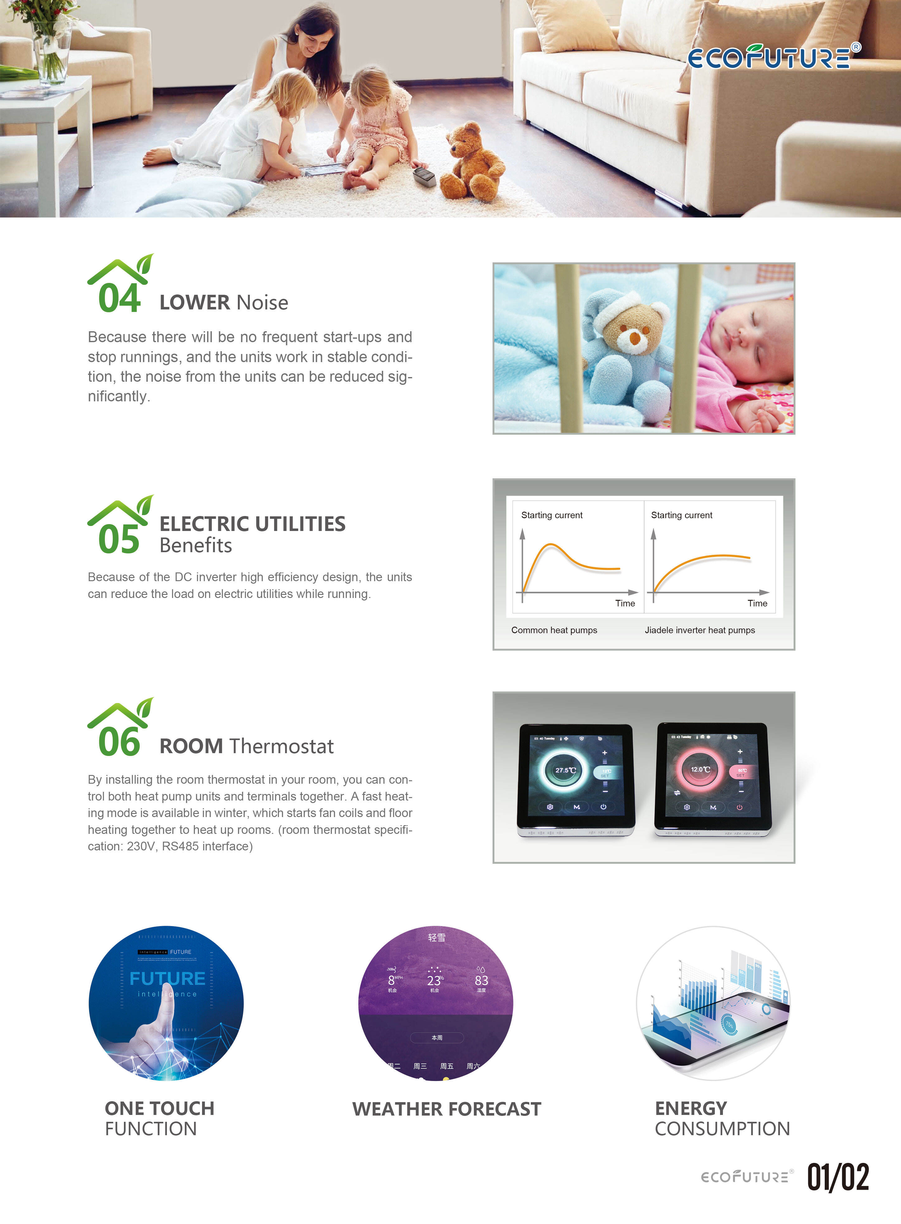 Die Wärmepumpe kann Ihre Immobilie sowohl kühlen als auch heizen und wird aus effizienter und energie sparender Technologie hergestellt. Sie kann mühelos zwischen Heiz- und Kühlmodus wechseln und die Raumtemperatur entsprechend Ihren gewünschten Einstellungen anpassen. Diese Funktion ist insbesondere in den Übergangsmonaten sehr nützlich, wenn das Wetter zwischen warm und kühl schwanken kann.