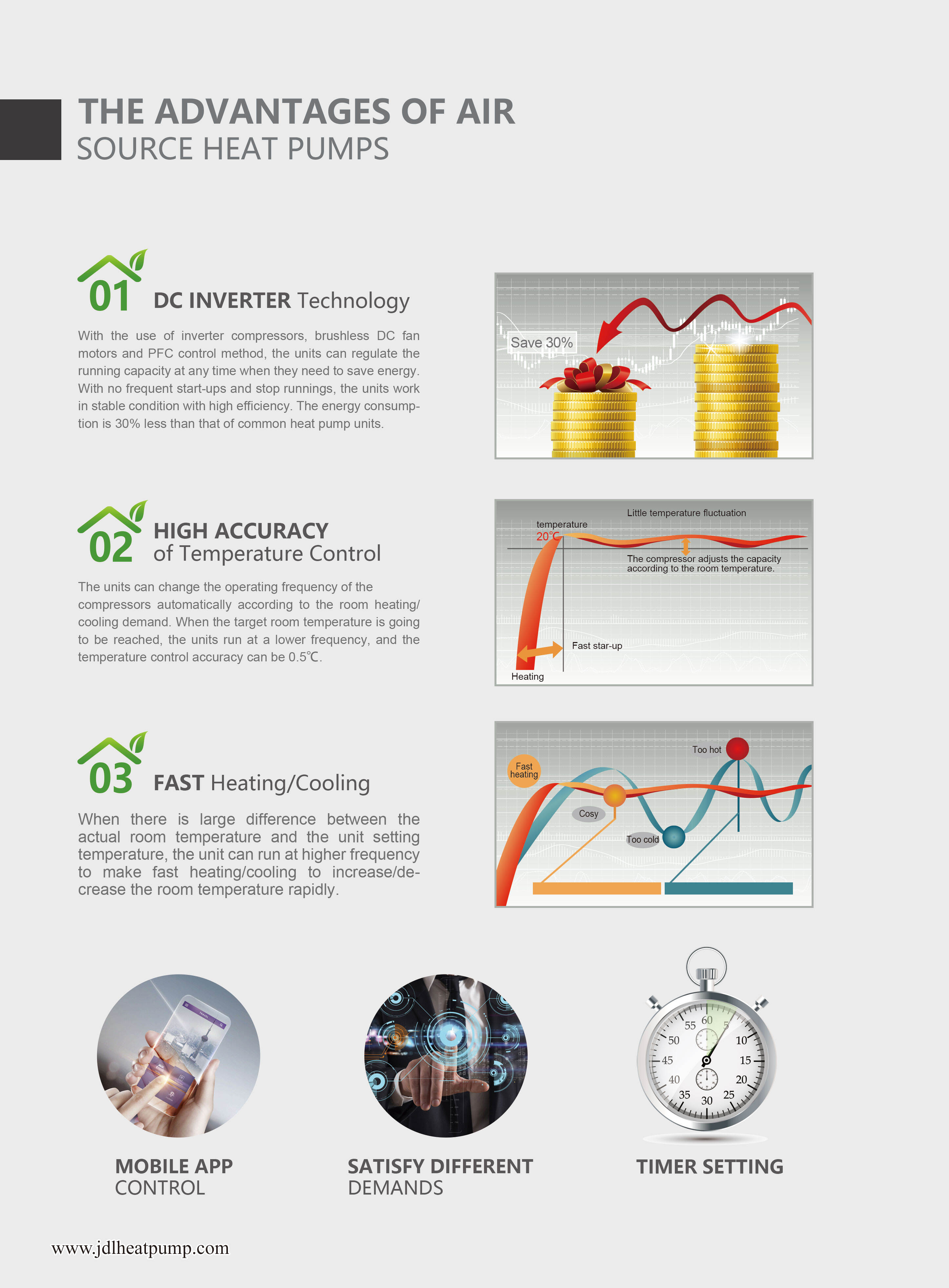 Die JIADELE Multifunktions-Wärmepumpe ist einfach zu installieren und kann personalisiert werden, um den vollständigen Anforderungen eines Arbeitshauses oder Büros gerecht zu werden. Sie verfügt über eine benutzerfreundliche Schnittstelle, die es Ihnen ermöglicht, die vielen Funktionen des Produkts zu steuern, einschließlich Temperatur-Einstellungen, Timer und andere Einstellungen. Außerdem können Sie die Wärmepumpe so einstellen, dass sie zu Ihrer besten Zeit arbeitet, wodurch Ihnen Zeit und Energie am Ende gespart wird.